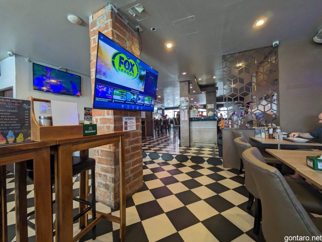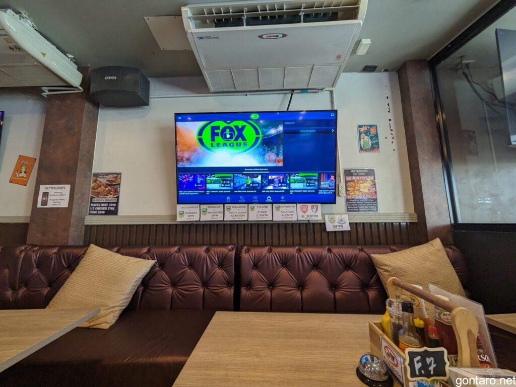 店内には至る所にモニターがあり、サッカーやアメフトの中継が映っております📺