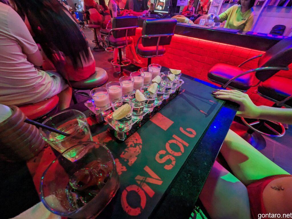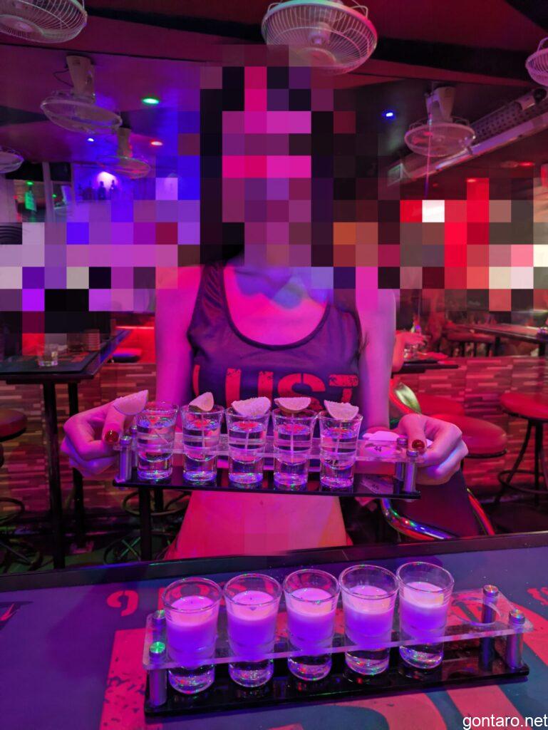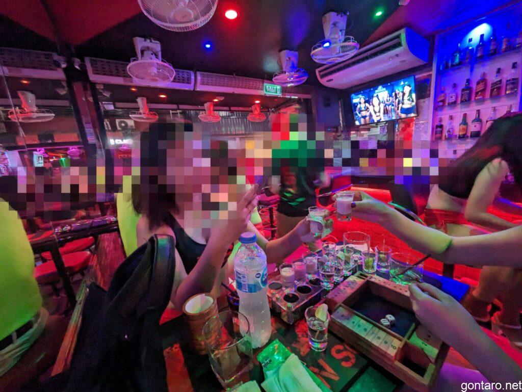 C嬢は嬉しそうに100バーツ紙幣を巻いたテキーラを自身のスマホで撮影しておりました📷