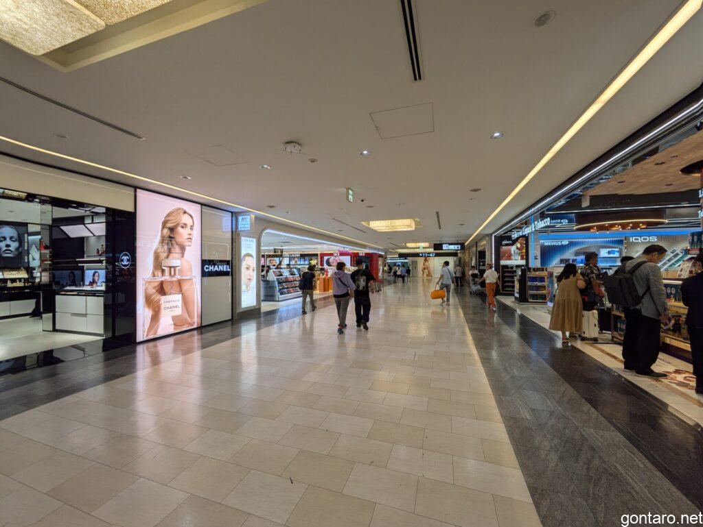出国手続きを済ませると、そこは制限エリアで免税店がズラリと建ち並びます。