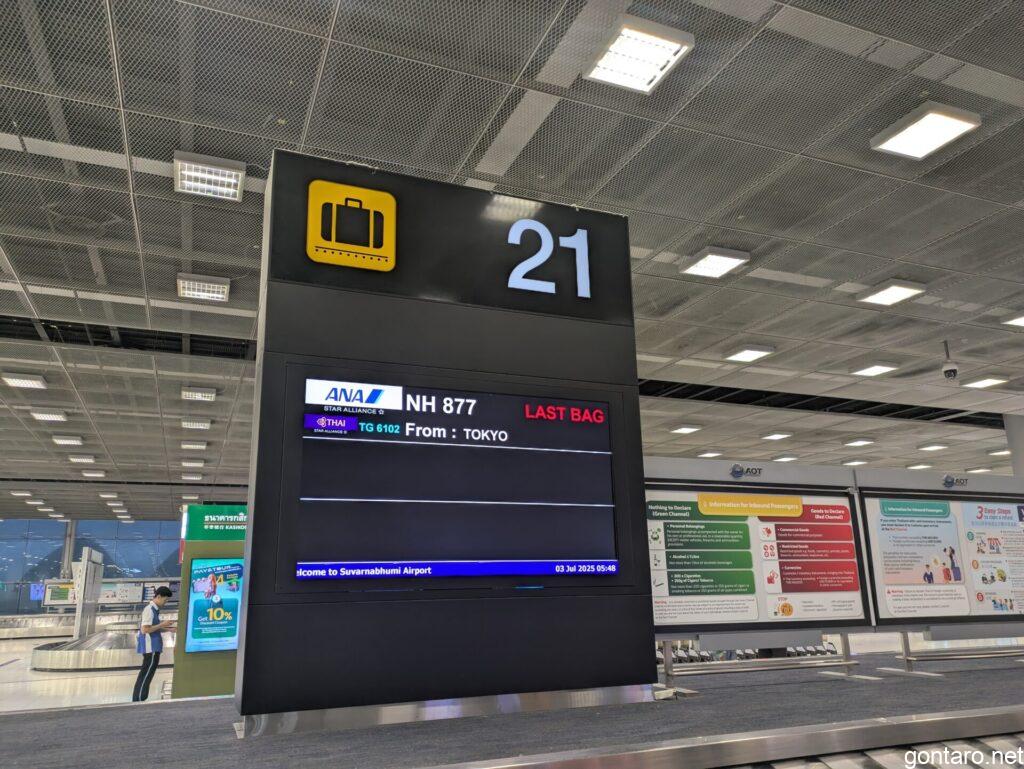 スワンナプーム国際空港に到着してから、空港出口まで35分程というスムーズさ🏃