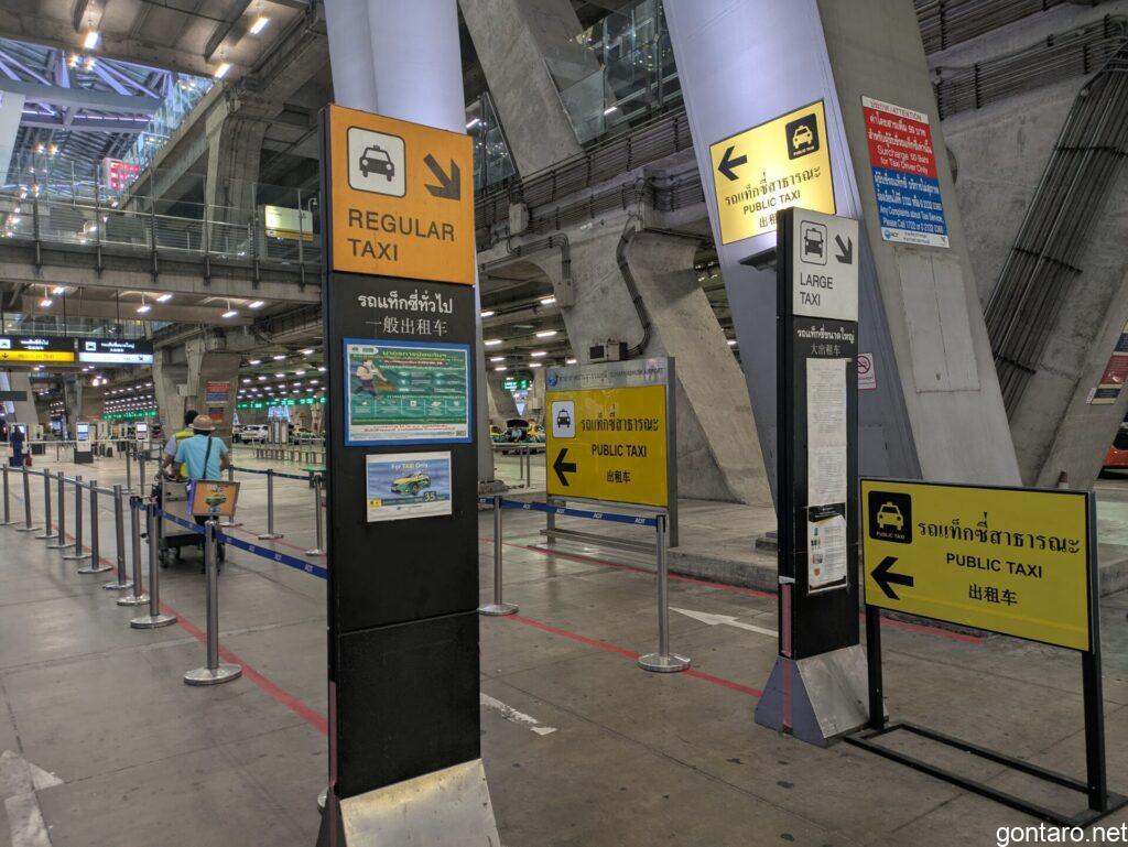 空港出口からエスカレーターでタクシー乗り場まで降りまして、レギュラータクシーレーンでチケットを受け取り、タクシーに乗り込みます🚕