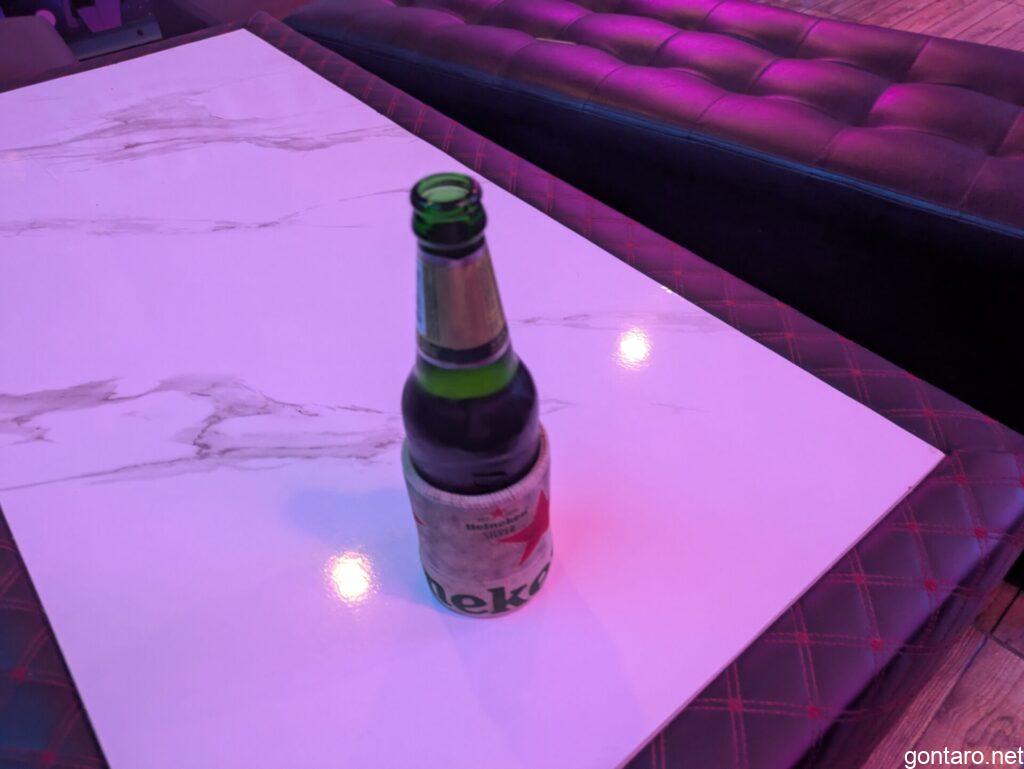 さすがに1時を過ぎていたので、Anikiさんは帰宅されたようで、とりあえずマオマオで火照った身体をクールダウンすべく涼しい店内でチャンビアを飲んでチェックの瓶🍺