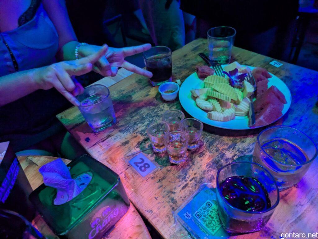 必死に目をこらしてステージ、その周辺を探すもP嬢は見当たらず、そんなことをしているうちに、P嬢のプアンで過去に一緒にマハーナコーンへ行ったことのあるモデル嬢2名がgontaroを見つけ、gontaroの両脇に座ってきます💺