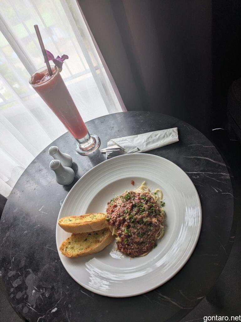 夕方位になり、ようやく食欲が出てきたので、ホテルのルームサービスを利用し、パスタとテンモースムージー🍉をオーダーして過ごしておりました。