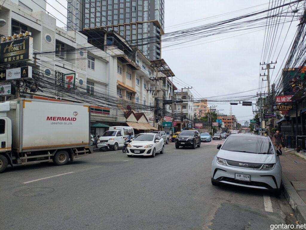 ソイハニーを通り、ブッカオ通りへと出まして、そこからソンテウに乗りましてサウスパタヤへと目指します🛣
