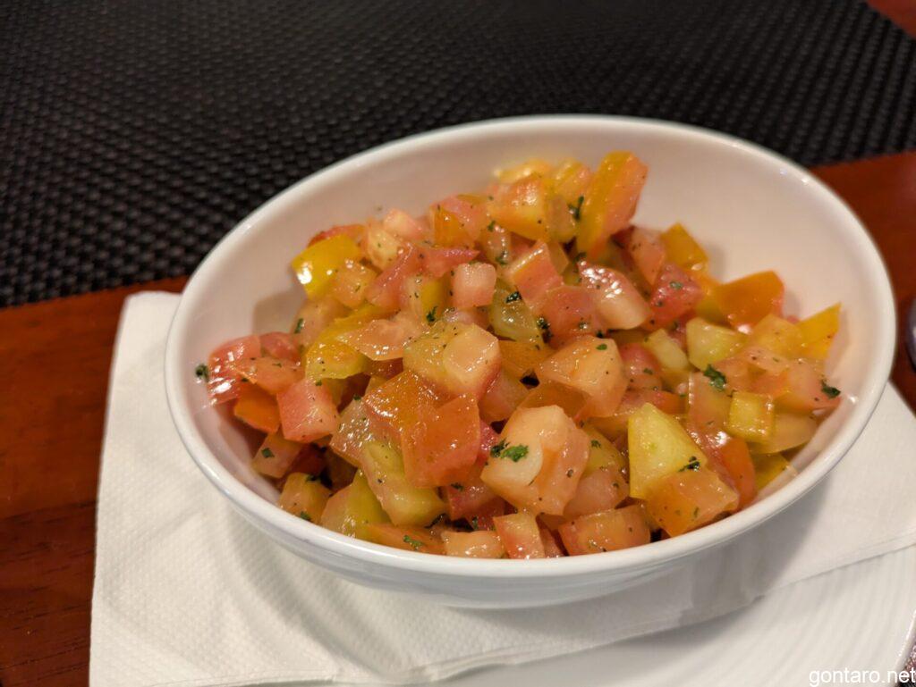 ソースはペッパーソースとサイドメニューはカットトマト🍅でございます。