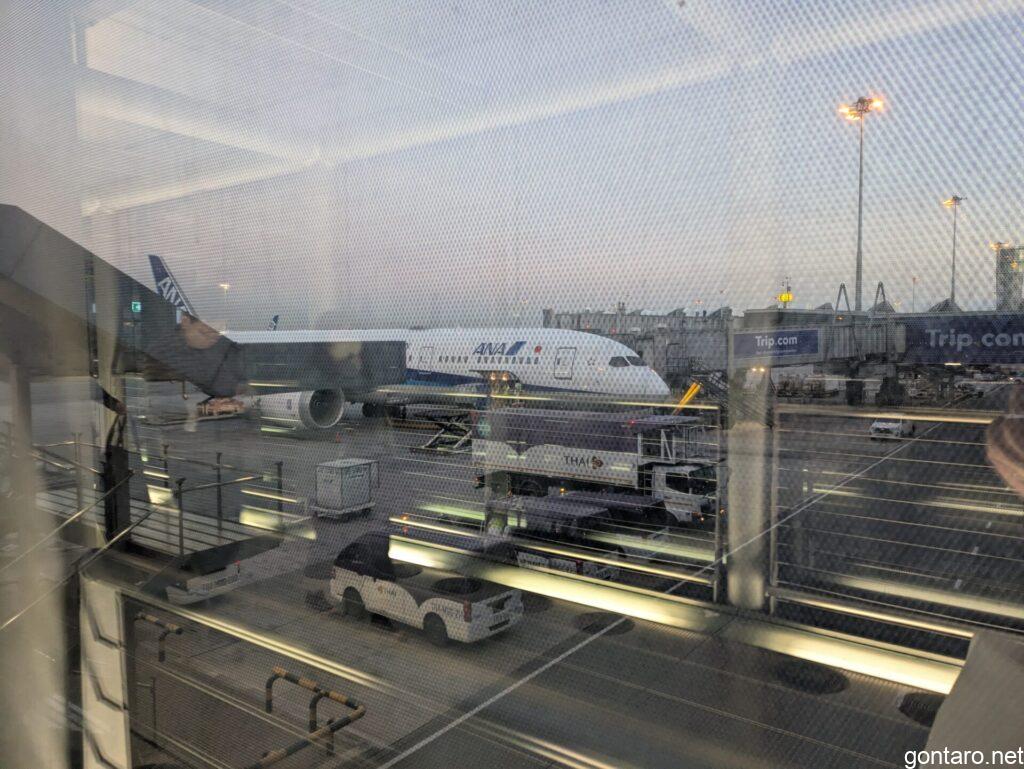 gontaroを乗せてきてくれたB787を振り返りながら、到着ゲートへと目指します🏃