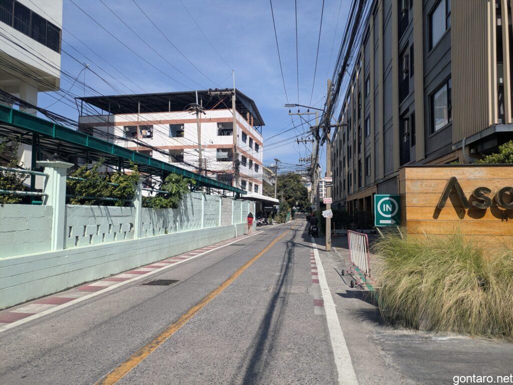 ソイチャイヤプーンとソイエキサイトへと別れる道をソイエキサイト方面へと歩きます🚶