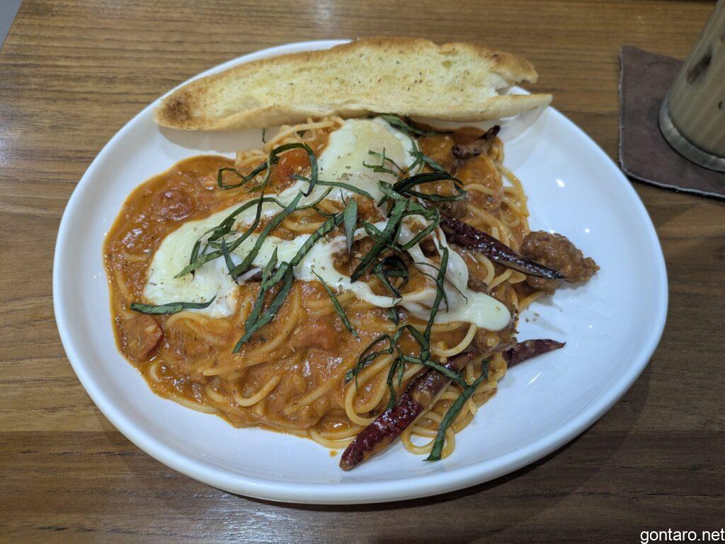 この日は無性にミートソースのパスタが食べたくなりまして、ミートソースパスタとカフェオレ(砂糖抜き)をオーダーしました。