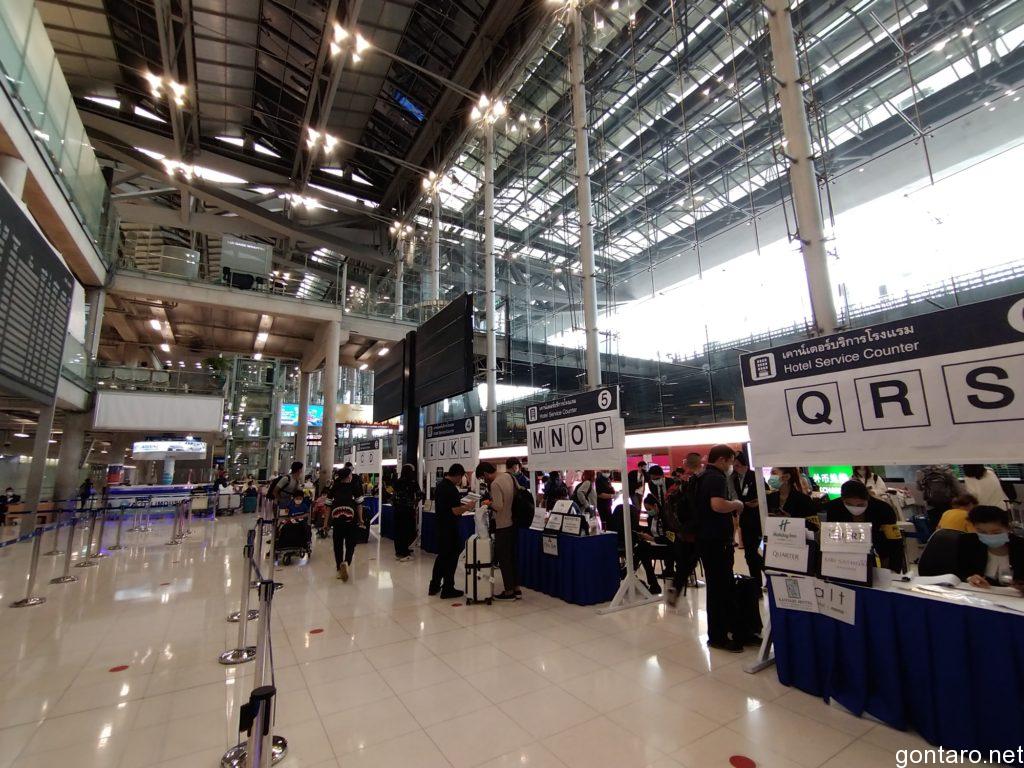 空港ロビーに出ますと、隔離滞在ホテル タクシー案内所へと通されます。