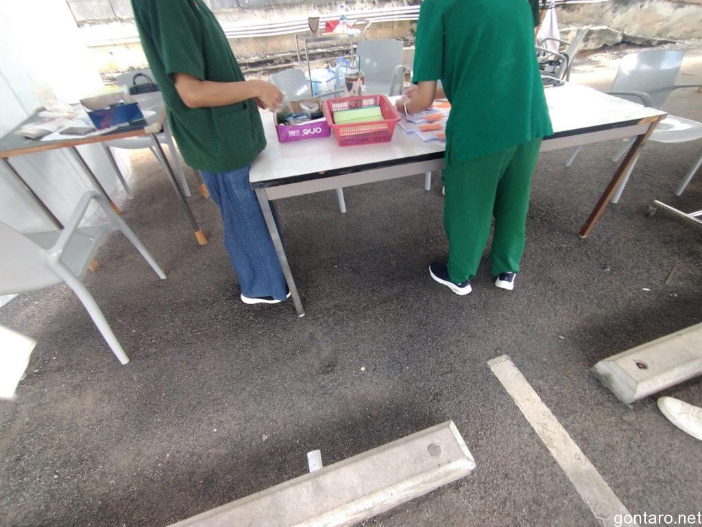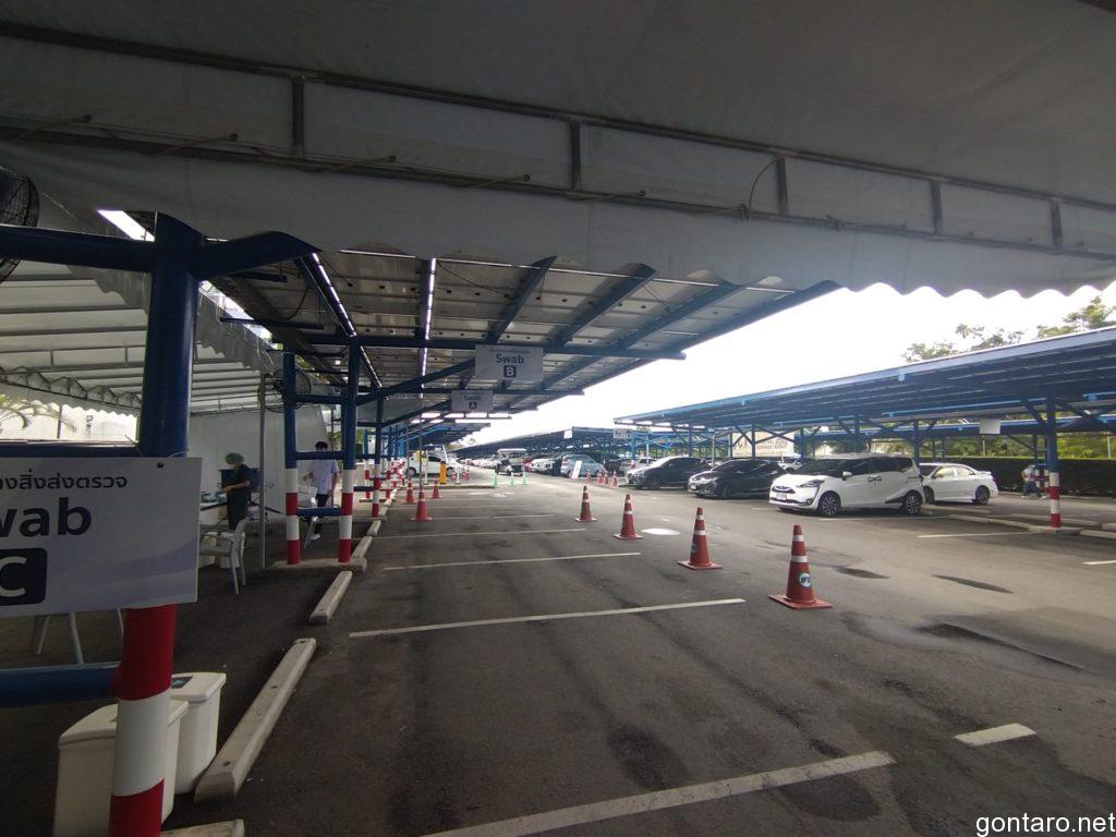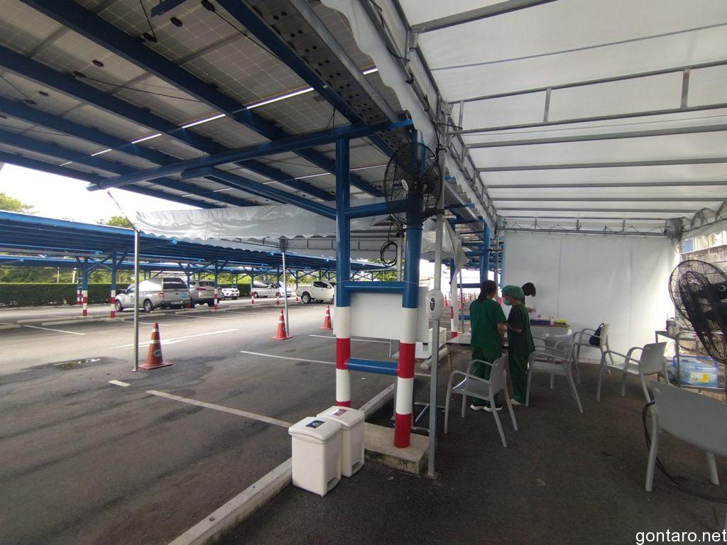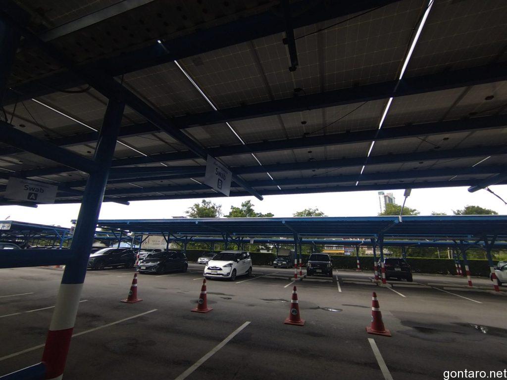 電動カートに乗りまして、プップー💨っと奥の駐車場スペースに設けられた検査会場へと