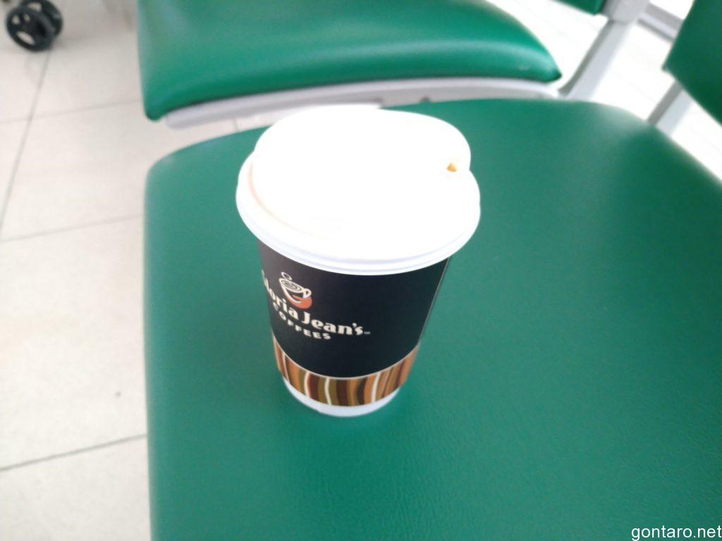搭乗口近くのカフェで温かいタイティーを購入し、休んでおりました。