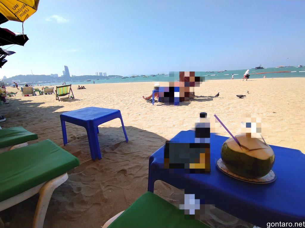 ビーチのイス代が100バーツ、ココナッツが50バーツでしたかね。