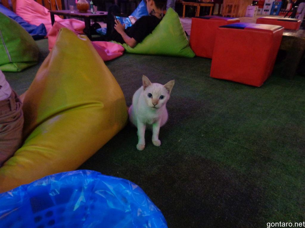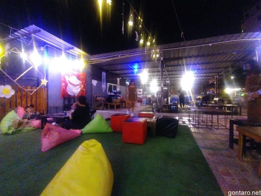 客層はローカルのタイ人客が数組おりまして、三角状のビーズクッションに