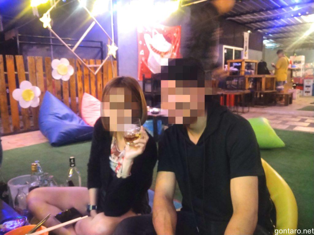 隣のテーブルで寂しそうに飲んでた女の子(結構カワイイ👩)と別のテーブルにいた腕っ節の強そうなタイ人ナイスガイ👨