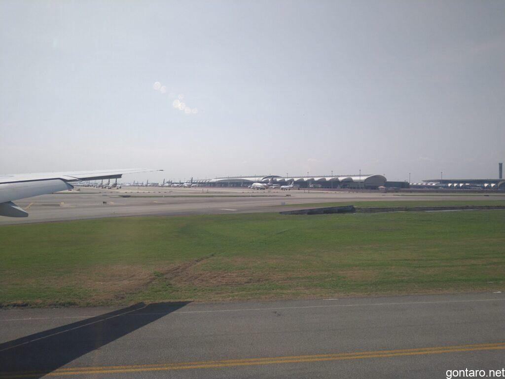 無事スワンナプーム国際空港へと着陸しました。時刻は14時42分でございます。