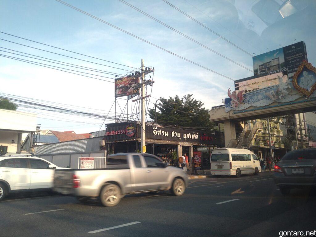 高速を降りると、窓の外はパタヤの風景が広がります🛺