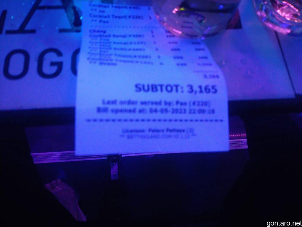 BF代別で3,165バーツか、今日は入店が遅い時間だったからお会計ものびずに助かったぜぃ🤗