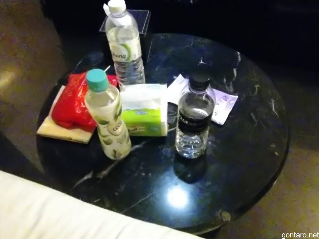 部屋に入ると、ベッド脇にテーブルを移動し、そこにセーウェンで買ってきたものを広げます。