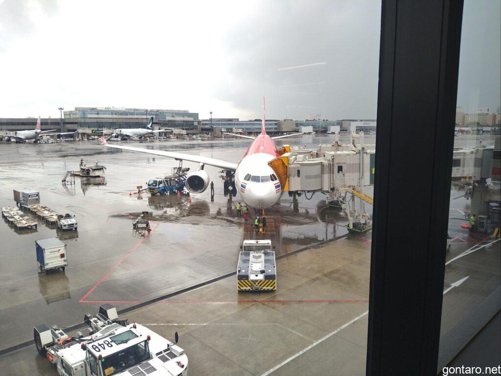 定刻通りに着陸したエアアジアⅩ603便、機外に出られたのが19時50分で