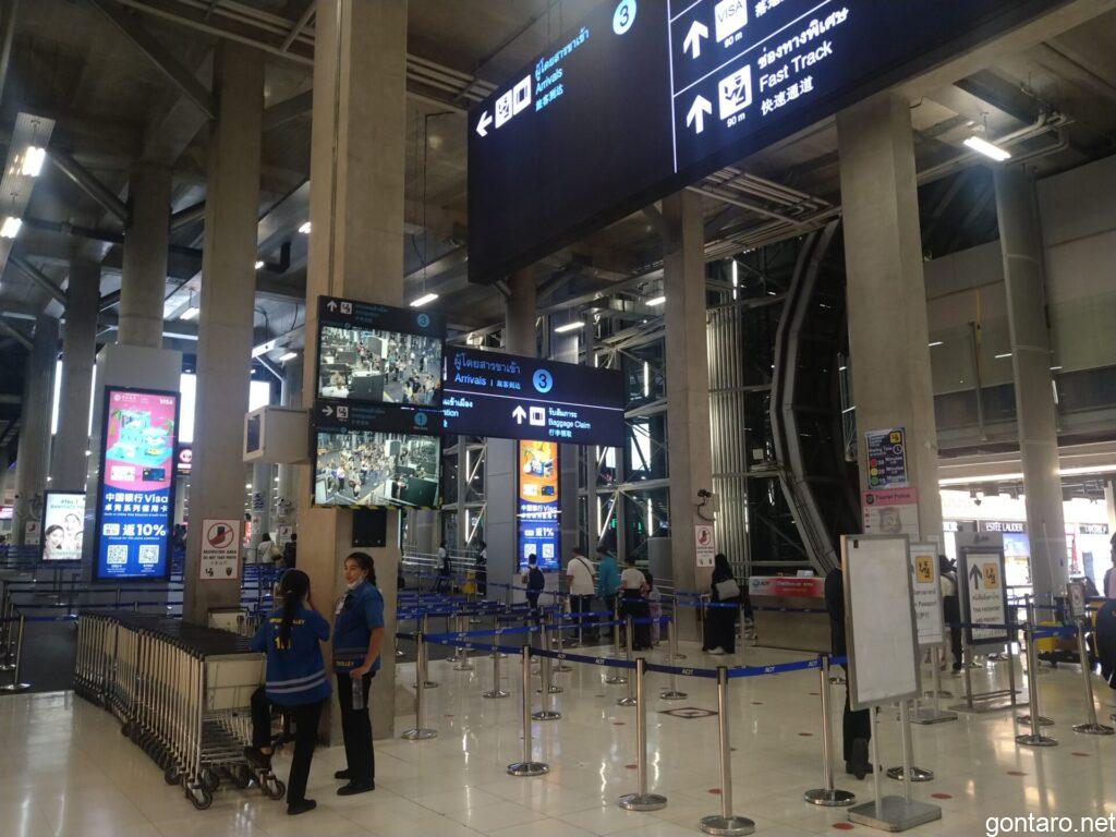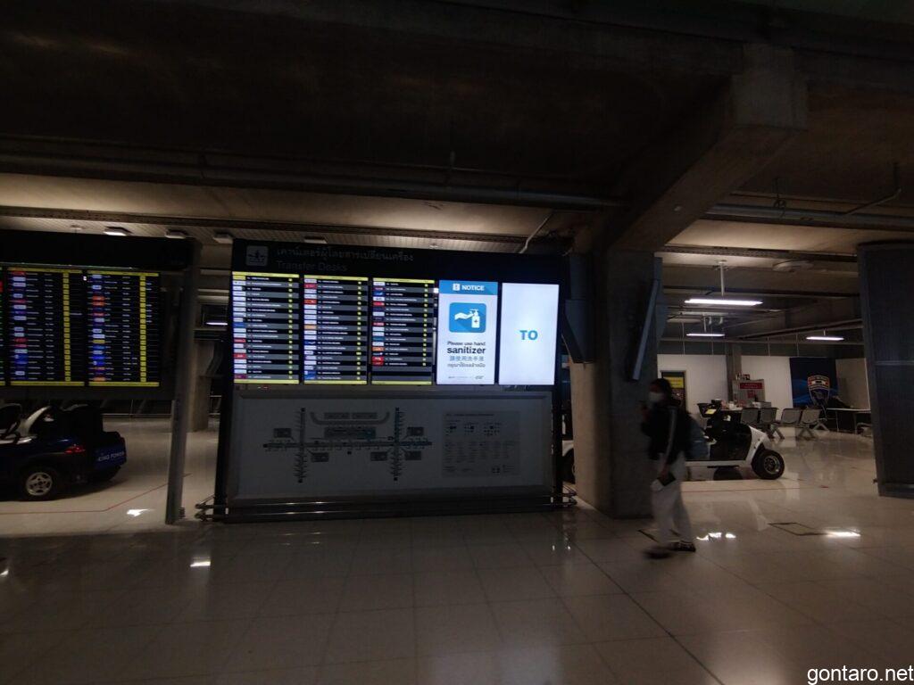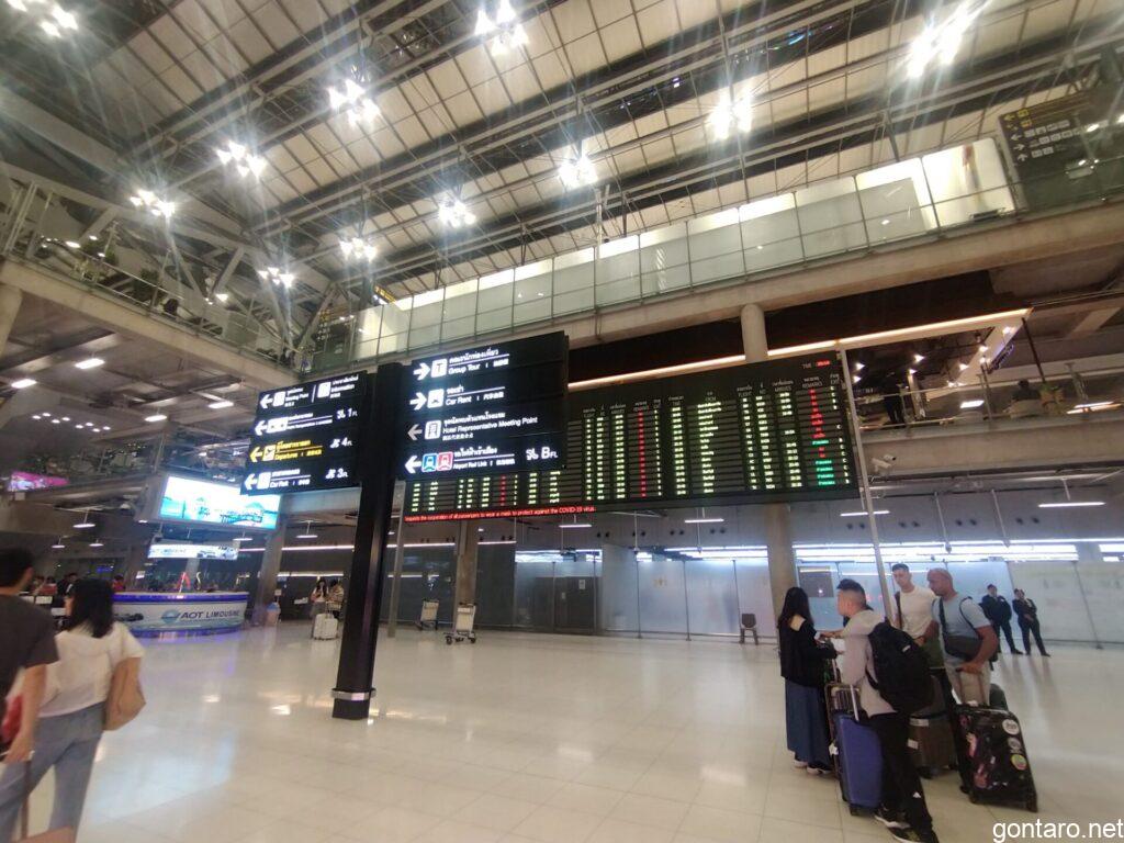 スワンナプーム国際空港の3番ゲートで、gontaroの名前が書かれたボードを持った