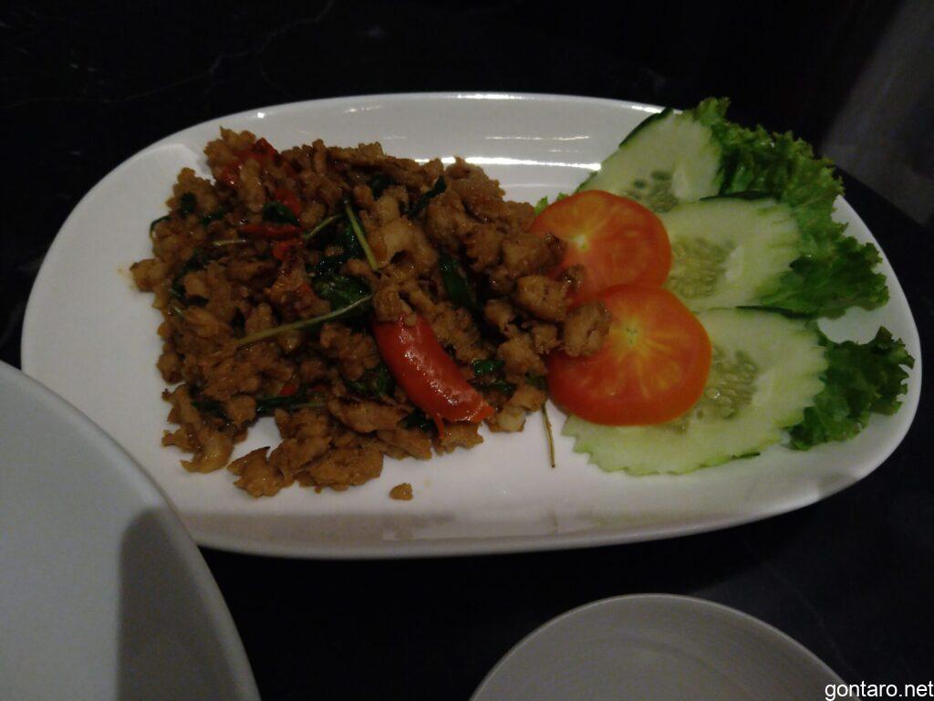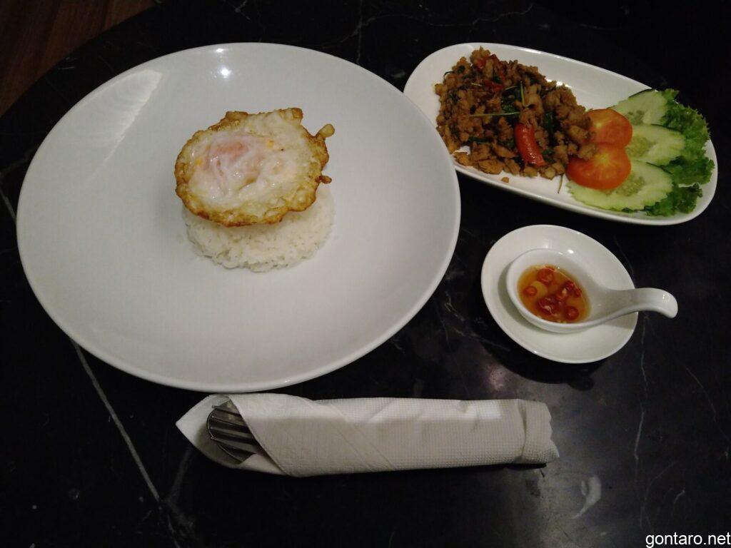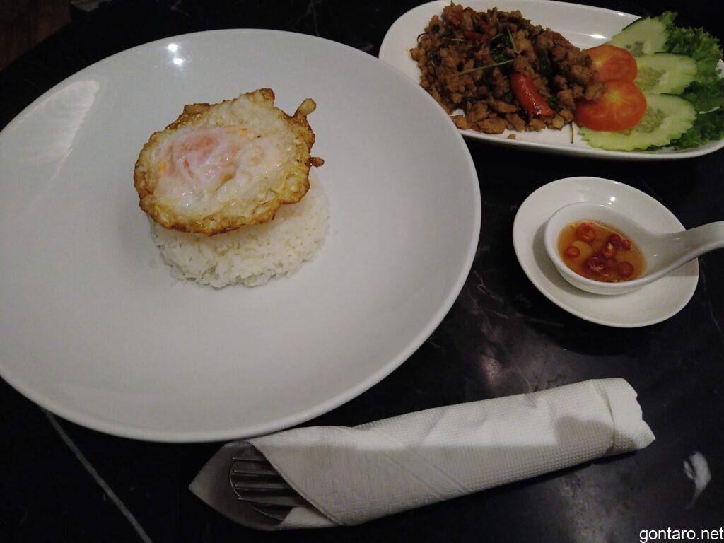 ホテルに併設されているレストランのスタッフに確認しますと、ルームサービスが可能ということなので、ガパオライス(ライスハーフ)をオーダーします🍚