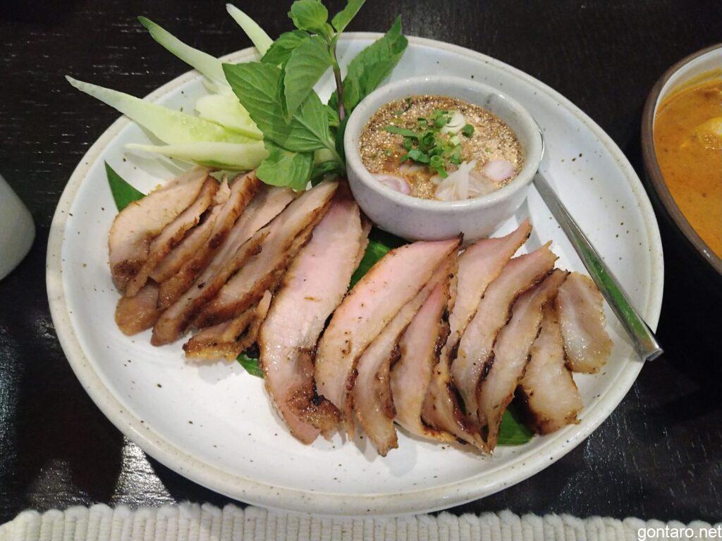 マッサマンカレー ⇒ コームーヤーン ⇒ テンモースムージー のルーティーンで食べました。