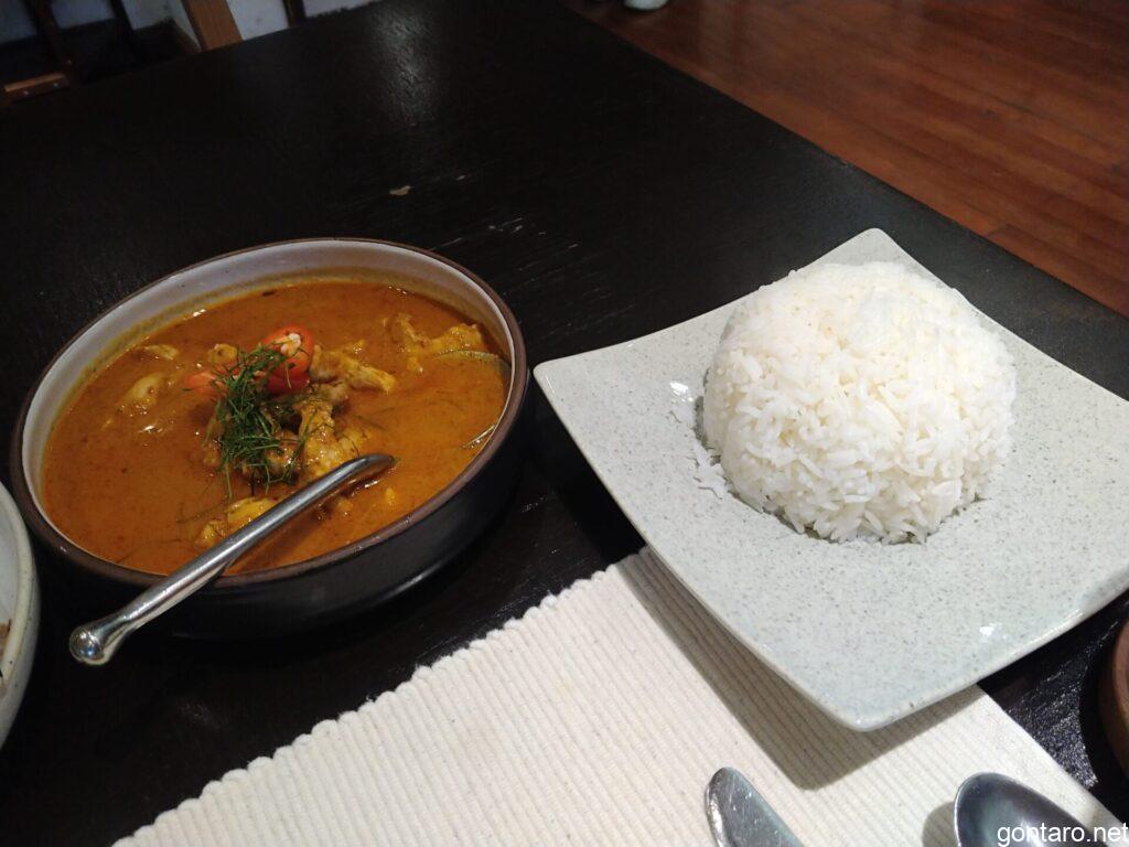 ハーフサイズで頼んだライスはレギュラーサイズ疑惑が否めませんが、マッサマンカレーはココナッツミルクの風味もきいており、然程辛くなく美味しくて一気に食べてしまいました。