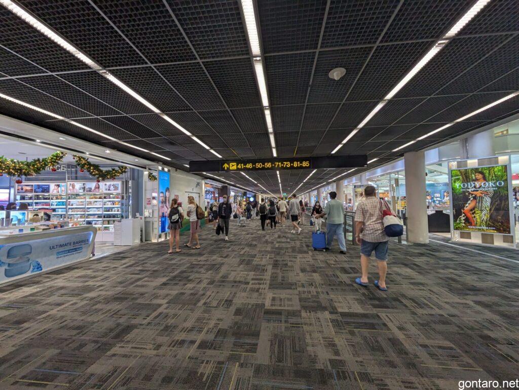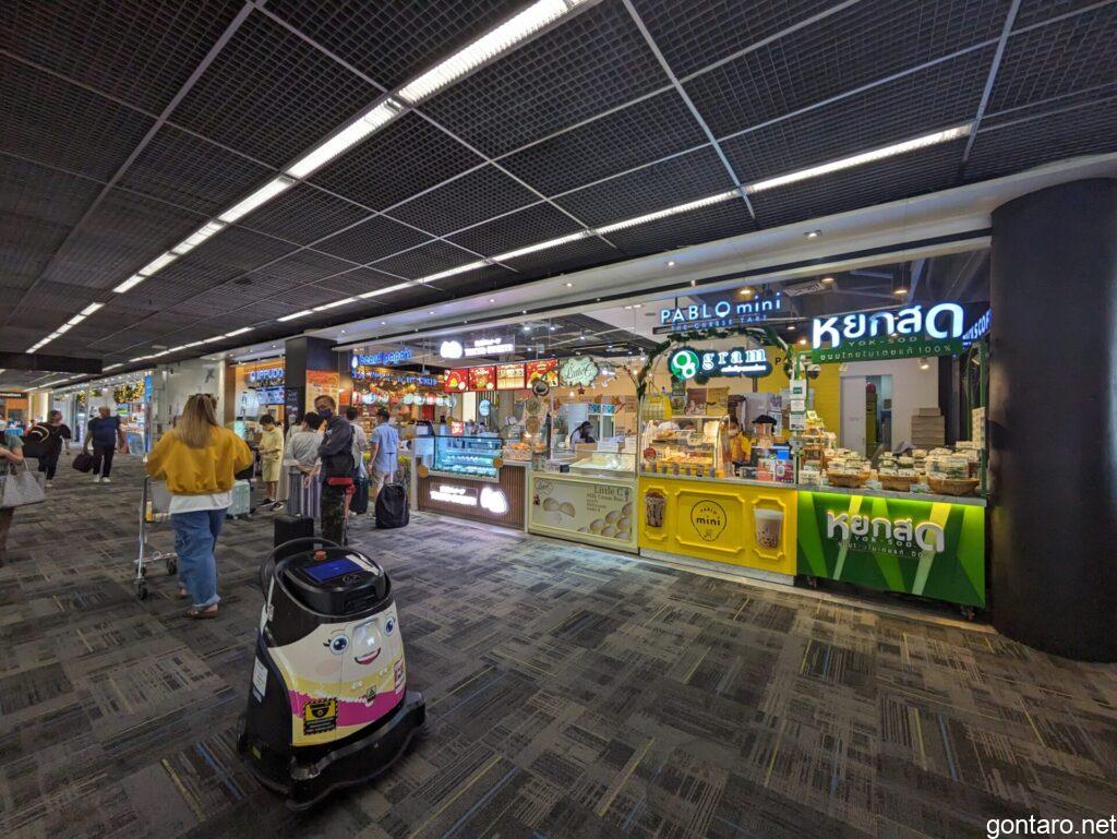 待合・登場口エリアに入ると広々とした空間、そして両脇には様々に店舗が建ち並びます。