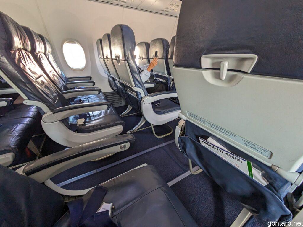 今回搭乗する機材はBoeing737、3列3列のシートで、gontaroの席は機内後方、3列の中央の席でありました💺
